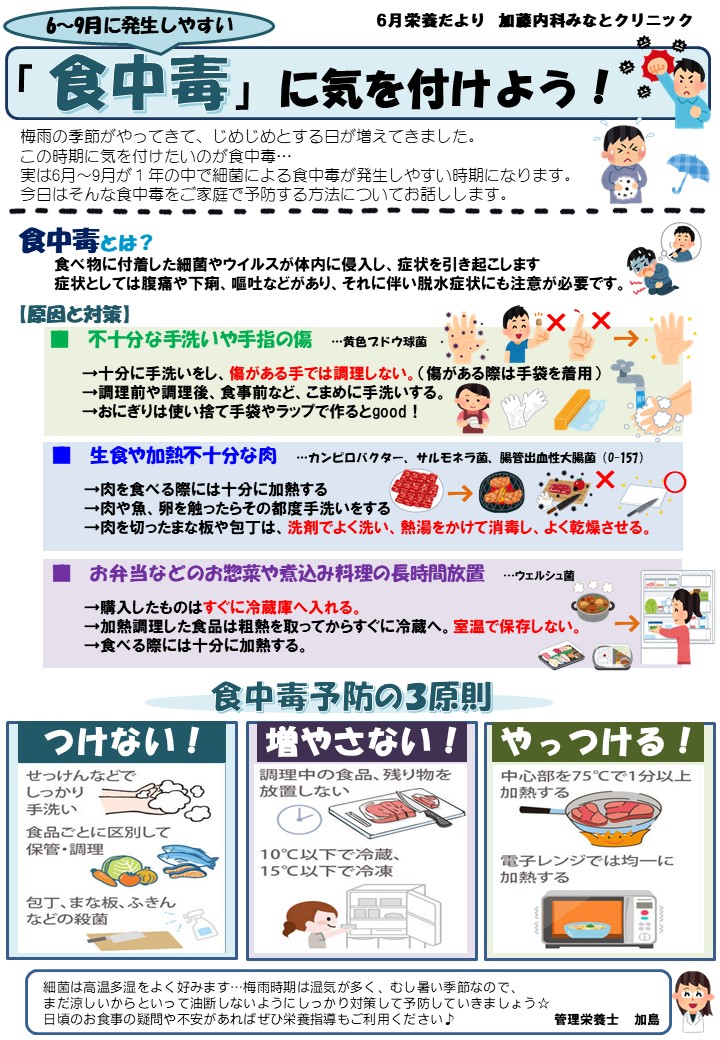 栄養だより(6月)【「食中毒」に気を付けよう!】 - 加藤内科みなとクリニック